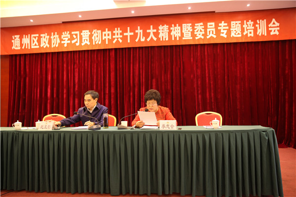 11月3日,区政协举办全体委员专题培训会,联系城市副中心和政协工作实际,学习贯彻中共十九大精神。区政协主席赵玉影出席并宣讲。
